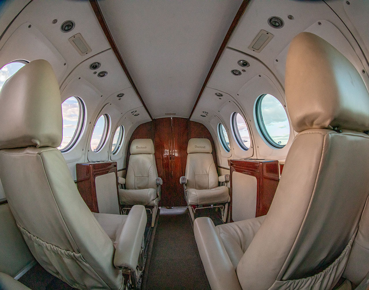 King Air A100 is a twin-engine turboprop from Beechcraft and one of the most popular light aircraft for on-demand air charter.